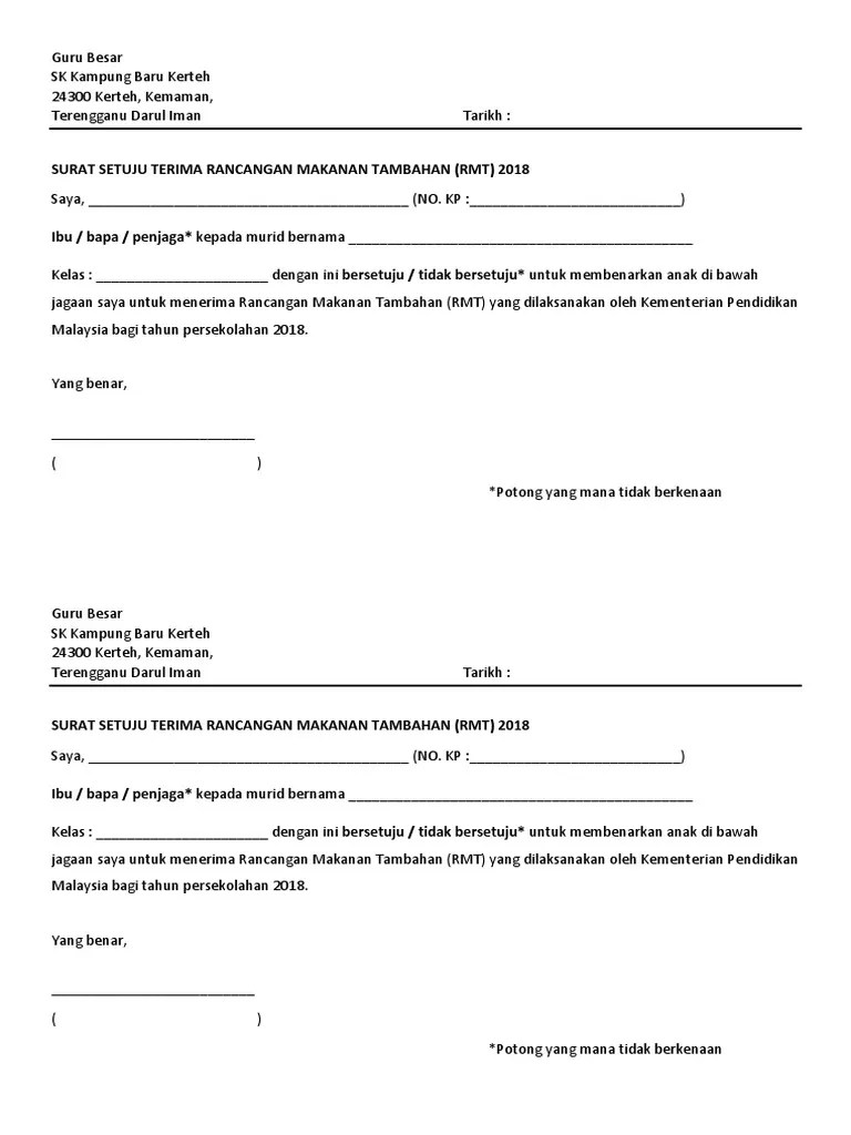 Beberapa salam penutup juga digunakan untuk menyampaikan harapan terkait permohonannya. Ppd/ppw perlu melaksanakan semakan dan pengesahan data murid yang layak menerima rmt ini sebelum dikemukakan kepada. Terima kasih telah mengirimkan surat atau artikel ke situs mediakonsumen.com. Fakta ini biasanya diisi dengan data sesuai permintaan dari orang yang meminta surat rekomendasi tersebut. Surat domisili atau surat keterangan domisili sering dibutuhkan untuk keperluan data diri di berbagai instansi. Artikel finansialku kali ini akan membahas tuntas mengenai apa itu surat keterangan domisili serta cara untuk membuat surat tersebut. Membuat surat keterangan sehat, diperlukan untuk mendaftar cpns atau ingin melamar kerja. Ya, roya merupakan surat/dokumen yang menjadi penanda bahwa kamu telah lepas dari beban utang kredit rumah. Surat pekeliling kwapm bil 1 2018 terkini. Semalam 11 jun 2010 hari jumaat, surat setuju terima aku hantar ke putrajaya kota kinabalu. Surat sekolah mohon rmt 2017 3043 kb. Untuk kerja kerja yang disebutkan di bawah ini. Selain itu, penulisan surat tanda terima juga tidak perlu panjang lebar, namun contoh surat tanda terima tersebut nantinya bisa anda pergunakan di berbagai kepentingan.